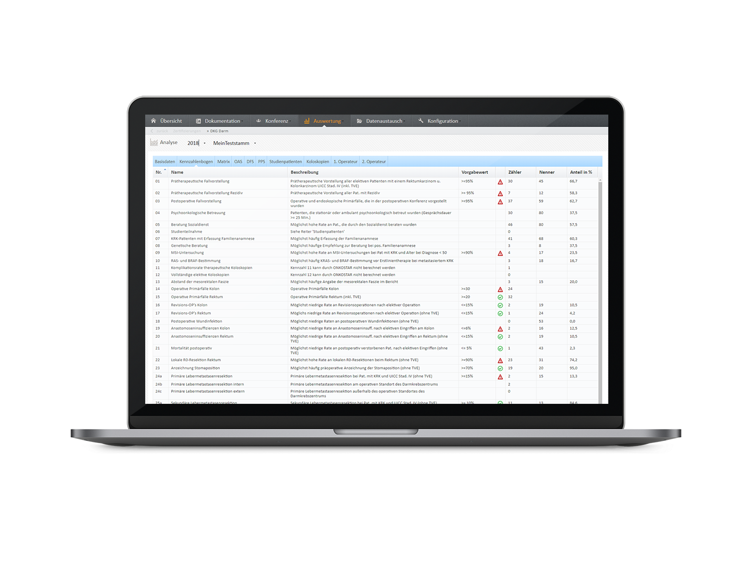 • Für die erfassten Daten stehen Ihnen in ONKOSTAR umfangreiche Auswertungsmöglichkeiten zur Verfügung